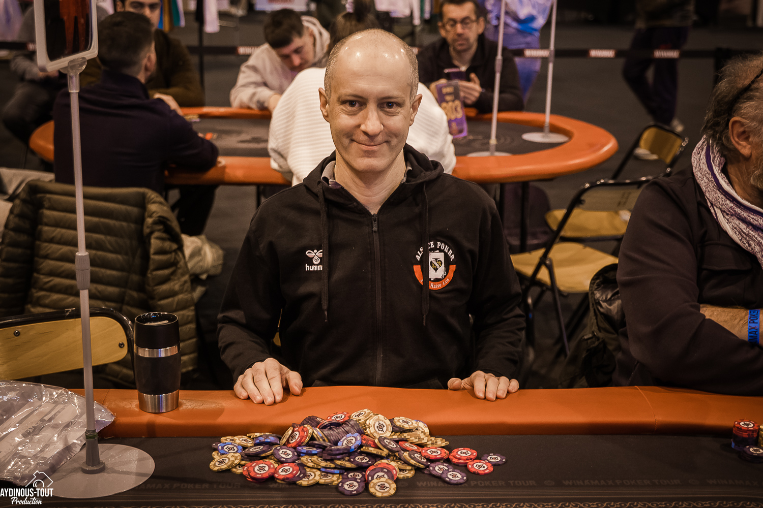 On a croisé la bannière du Reims Bretzel Poker tout le week-end (y compris avant le départ : ils nous ont donné un coup de main pour monter les tables !) : la petite asso qui monte alignait une quinzaine de membres au départ de l'étape de Colmar, et Julien est parvenu à franchir la ligne d'arrivée. À Reims, il est diagnostiqueur dans le secteur immobilier. Le poker, ça fait quinze ans que ça dure avec, comme moments marquants, une gagne à 2 700 € sur un 10 € en ligne, et une participation à la Grande Finale il y a quelques années, il avait direct buy-in. Mais le poker, c'est avant tout une histoire de potes, en communauté. « Je viens chercher le côté plaisir, le contact, les rencontres, d'autres façons de jouer. Et quand on prend des bad-beats, faut les accepter, la preuve, j'en ai pris deux aujourd'hui ! » Ses potes du club vont tenter de l'imiter sur les étapes qui restent au programme...